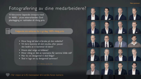 Om dere er 3, 30 eller 300 ansatte som skal fotograferes til nye hjemmesider, så er vi rette team til jobben!